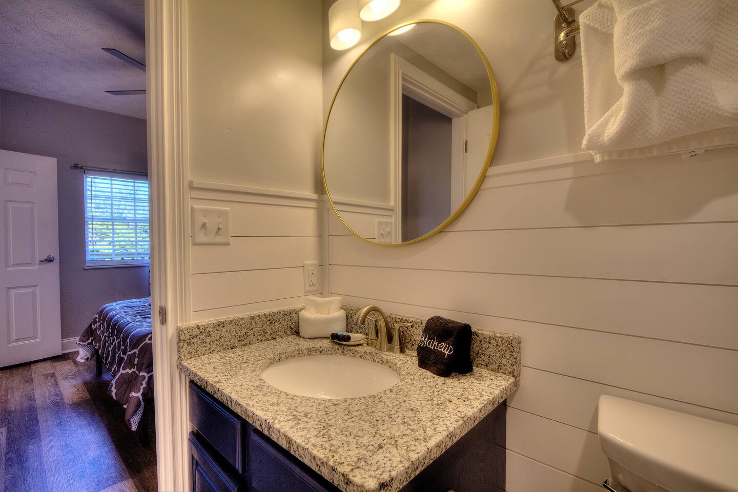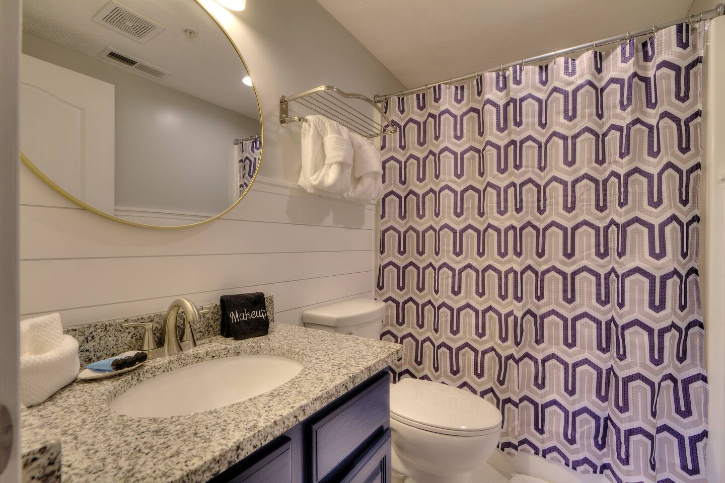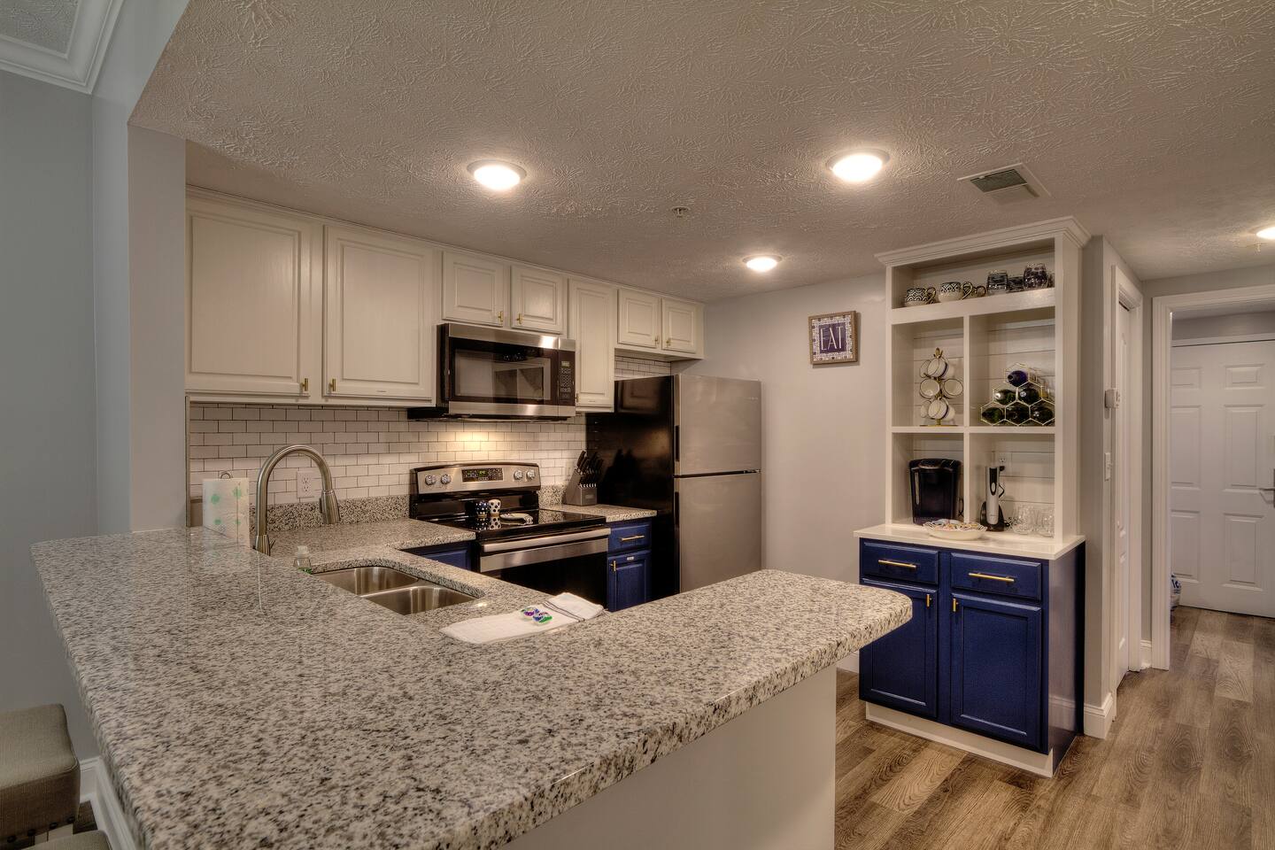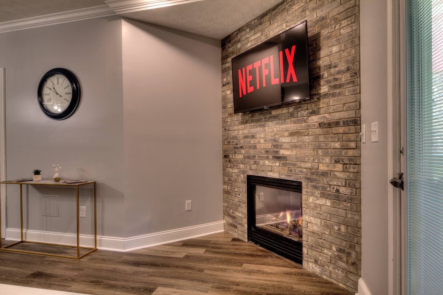 Completely remodeled all new Condo in great location. Close to Dollywood, Ripken, LeConte Center, and everything in Pigeon Forge as well as easy access to Gatlinburg. Fast private high speed internet, HD Cable TV Package, and Free Netflix provided. Kitchen: New granite counter-tops, appliances, cabinets. Full-size refrigerator/freezer, K-Cup Coffee Maker and regular coffee maker, full size stove/oven, full size dishwasher, microwave, toaster, plates, cups, pots, pans, and all basic cookware. Bedroom #1 Spacious Master Bedroom with Queen Bed, Memory Foam mattress, ceiling fan, full guest closet, sitting area with computer desk work space, and 43" HDTV Smart TV. Connects to bathroom #1. Bathroom 1: Large shared bathroom with the living room. Double vanity with make-up station, granite counter-tops, and tiled shower. Towels, hand towels, wash cloths, make up cloths as well as a basic starter set of Shampoo, Conditioner, Lotion, and soap supplied. Bedroom #2 Queen Bed, memory foam mattress, ceiling fan, full closet, private bathroom, 43" HDTV Smart TV. Bathroom 2: Private Bathroom connected to Bedroom #2. Full Bathtub/Shower. Granite countertop vanity. Towels, hand towels, wash cloths, make up cloths as well as a basic starter set of Shampoo, Conditioner, Lotion, and soap supplied. Living Room: Couch and love seat provides seating for a 50" Smart HDTV with Expanded Cable TV and Free Netflix. Beautiful brick fireplace with gas logs, and private balcony that seats 4. Dining Table that seats 6, as well as granite counter-top bar that sits 2 more(seats 8 comfortably)