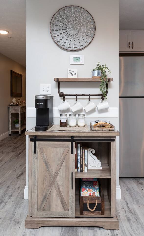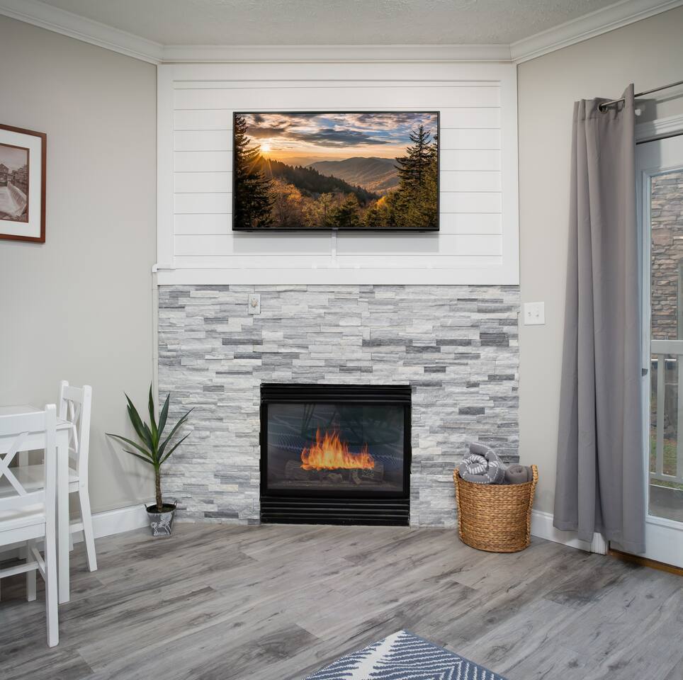 Make “Heart of the Forge” your home away from home, hosted by Matt, a SuperHost, with over 4,000 5-star reviews. With an unbeatable location and easy access to all local attractions including Gatlinburg, this inviting condo has been recently refreshed with new furnishings and is ready to welcome you for your next stay in the Smokies. Accessible by elevator, free parking and luggage carts available on-site. Kitchen: Granite countertops, stainless steel appliances, dishwasher, full size stove/oven, microwave, toaster, double sink, full-size refrigerator/freezer, ice maker, dedicated coffee station with Keurig machine, drip coffee pot. Stocked with all your kitchen necessities including glassware, dinnerware (adult/kids), pots, pans, full dish set, basic cookware/utensils and cleaning supplies. Bedroom: Cozy space featuring a king-size mattress with 6-inch memory foam topper (encased for cleanliness), USB charging lamp, white noise machine, essential oil diffuser, dresser, suit/dress hanger, guest closet, luggage rack, HD smart TV, iron/ironing board, hair dryer. Bathroom: Unwind in a fully-tiled shower with sliding glass doors, granite countertops, stocked with fresh bath, hand and makeup towels and washcloths. Living Room: Kick your feet up and enjoy Smart HD and cable TV, a gorgeous stone fireplace with gas logs and easy-to-use timer function, a queen sleeper sofa bed with upgraded memory foam, bluetooth speaker and private patio. Connect with family/friends in your downtime with several family-friendly games and puzzles. Amenities Enjoy full access to amenities on the property during operating hours from 9am-10:30pm, including an outdoor pool and hot tub (seasonally available), heated indoor pool and sauna (year-round access). Trolley stop at the entrance gives access to Dollywood and other attractions in minutes for $3/day. Directly across the street is a small pizza parlor/bar with outdoor seating and a convenience store. Adjacent to Gatlinburg Public Golf Course.