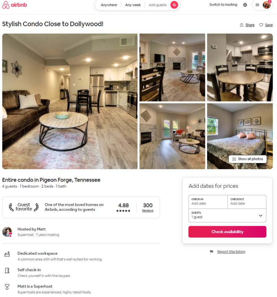 Stay in the “Heart of the Forge,” centrally located minutes from Dollywood, The Island, Le Conte Center, The Ripken Experience and more! This fully remodeled 1-bedroom condo sleeps four with a king-size bed, queen sleeper, walk-in shower, full kitchen, private WiFi, washer/dryer and warm vibes to make you feel right at home. The community offers a variety of amenities including a trolley stop, outdoor pool and hot tub (seasonally available), heated indoor pool and sauna for ultimate relaxation.