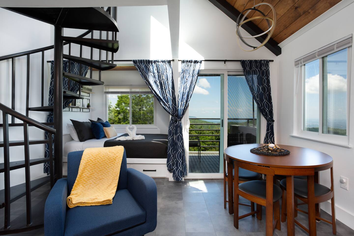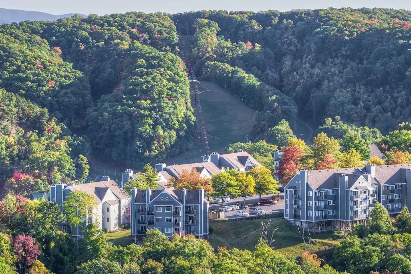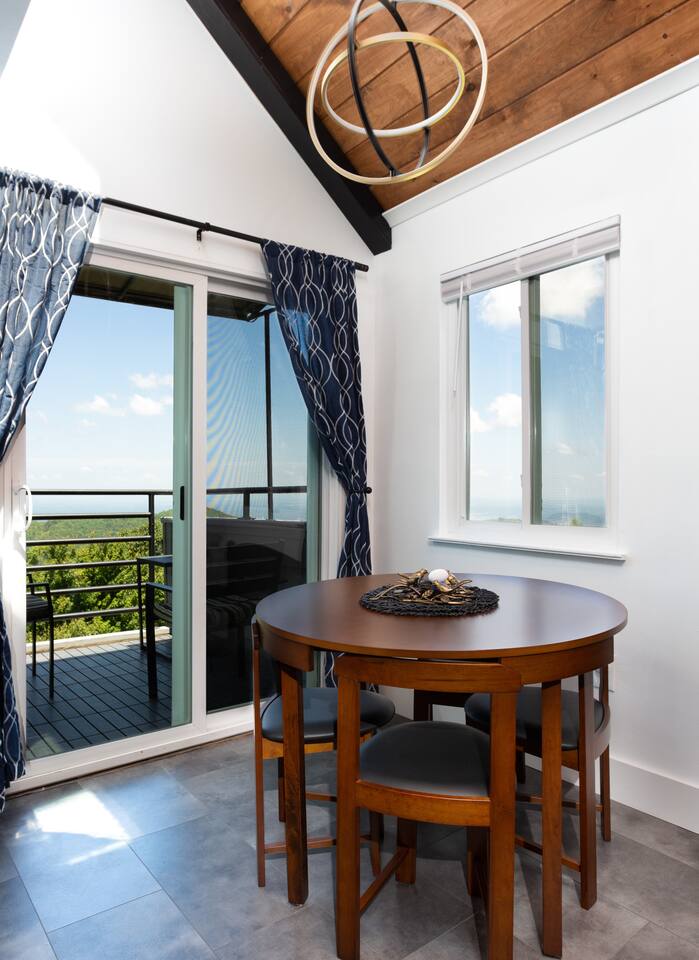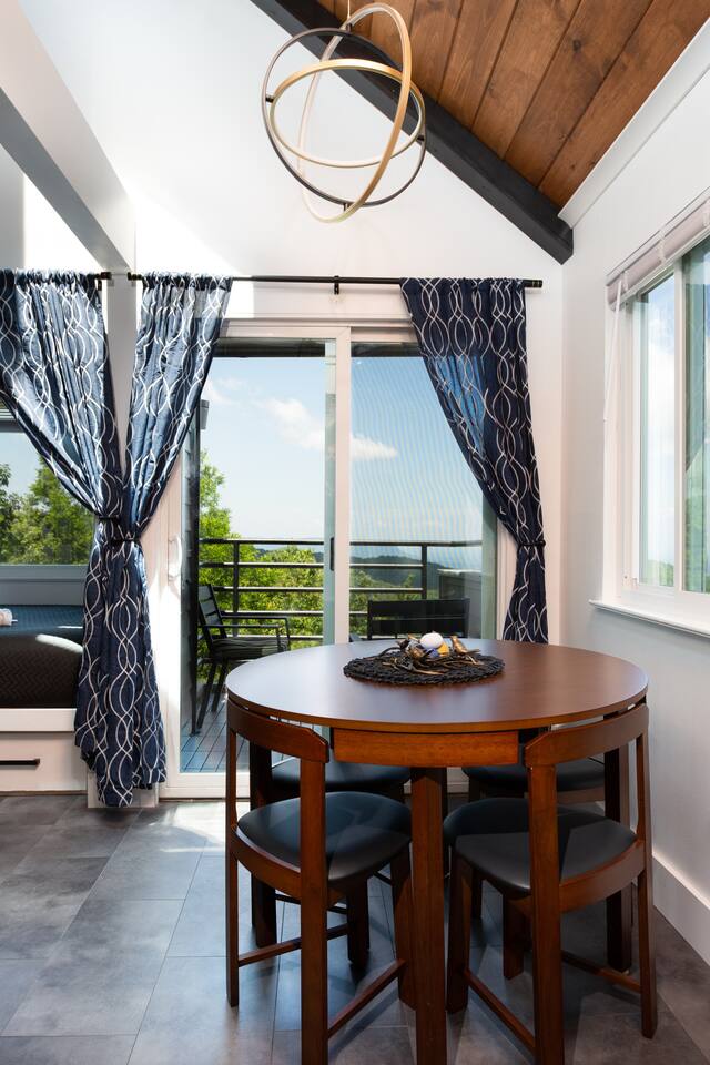 **Brand new Poolhouse now open!! Heated Indoor pool and 2 in-ground hot tubs open daily. Heated outdoor pool also open. NEW Remodel from experienced Superhost with 2,500+ 5 star Reviews! Kitchen: Newly remodeled with new granite countertop open shelving, and new appliances. Full-size refrigerator/freezer, K-Cup Coffee Maker and regular coffee maker, stove/oven, dishwasher, microwave, toaster, plates, cups, pots, pans, and all basic cookware. CrockPot, Brita filtered water pitcher. Living Room: Brand new unique gold LED electric fireplace. Modern boxed beam stained ship-lap wooden ceiling. Comfortable and stylish blue couch and accent chair. Huge 55" Smart TV. Dining table and 4 chairs, and 2 chairs on the balcony to enjoy the views while drinking a glass of wine or your favorite drink on the balcony. Bathroom: New floating vanity, lights, and lighted mirror. Bathtub/Shower Combo. Fresh Towels, hand towels, wash cloths, as well as a basic starter set of Shampoo, Conditioner, Lotion, and soap supplied. Beds: The Queen size Alcove Bed is tucked away off the living room surrounded by gorgeous windowed views. This queen bed has a new Hybrid Memory Foam mattress with drawers underneath for storage. Up the spiral staircase is an additional Queen size bed that also has a Hybrid Memory Foam mattress. Loft Area(upstairs): Upstairs has a dedicated working desk, USB chargers, and lamp for those who may need a space to get work done. 50" Roku Smart TV with a Queen bed, closet, and ceiling fan. Location: Gatlinburg Summit is located in a wonderful area that is a very quiet and peaceful setting. While it is atop the mountain in order to have the magnificent views, it is still close to all the action. You are just around the corner from Ober Gatlinburg. You can skip all the Gatlinburg traffic by taking the bypass and arrive quickly and stress free. Downtown Gatlinburg is quickly accessible by 4 different locations to give you plenty of options including Ski Mountain Rd(Light #10), Sugarlands Welcome Center in the National Park(via bypass), Light #3 at Ripley's Aquarium(via Campbell Lead Rd) and the entrance of Gatlinburg(via the bypass). All of these options are just a short 10-15 minute trip. In addition, Pigeon Forge is right down the road via the bypass in about 15-20 minutes. Don't feel like driving much? Take a very short drive to Ober Gatlinburg(less than 2 miles) and ride the scenic Aerial Tram into downtown Gatlinburg. The trams run every 20 minutes so you can return whenever you please.