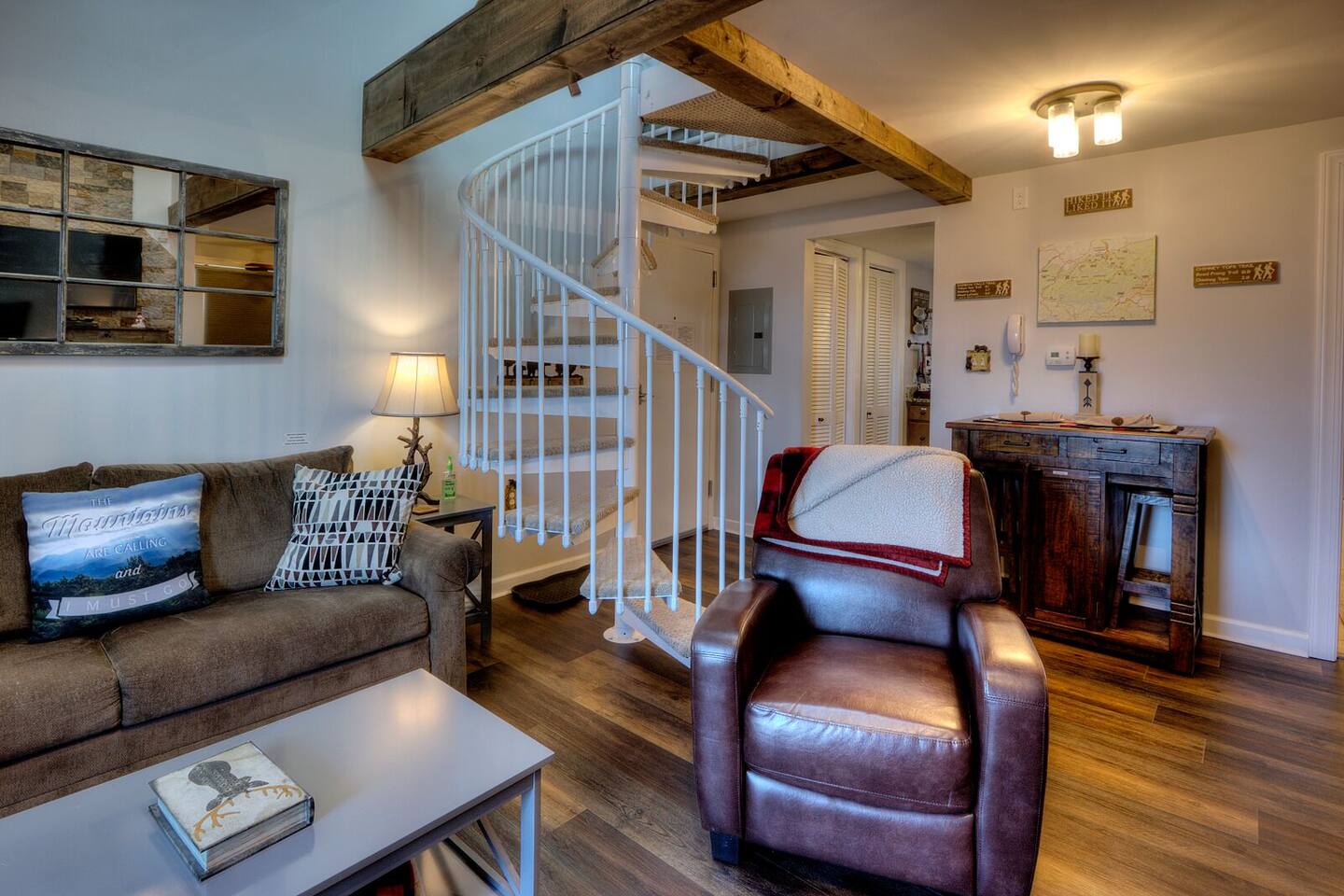 **Brand new Poolhouse now open!! Heated Indoor pool and 2 in-ground hot tubs open daily. Heated outdoor pool also open. Our unit is truly unique. Just built in 2016, and it has never been on the rental market till now. Enjoy the unrivaled view along with all the modern amenities and furnishings. From the custom stone fireplace, the exposed wooden beams, to the granite countertops, this unit will make you feel at home in the mountains. Kitchen: New granite countertops, appliances, cabinets. Full-size refrigerator/freezer, K-Cup Coffee Maker and regular coffee maker, stove/oven, dishwasher, microwave, toaster, plates, cups, pots, pans, and all basic cookware. NEW-Added a 4qt CrockPot and Brita water filter pitcher. Living Room: Recent new vinyl plank flooring, tall vaulted ceilings with real wood burning stone fireplace. Comfy couch and leather recliner. 55" Samsung HD SmartTV, Private High-Speed WiFi. Private Balcony off living room with stunning views of Mt. Leconte. Two comfortable rocking chairs with a table to enjoy the views while drinking a glass of wine or your favorite drink. Bathroom: Full Bathtub/Shower with glass doors. Granite countertop vanity. Towels, hand towels, wash cloths, make up cloths as well as a basic starter set of Shampoo, Conditioner, Lotion, and soap supplied. Beds: Queen size alcove bed is tucked away off living room space. Upstairs is a stand alone Queen size bed in the loft area. The loft bed looks out the upstairs sky light that is aimed at Mt. Leconte. You can lay in bed and enjoy the mountain view or starry nights. Fresh and comfy linens, blankets, and pillows all included. Location: Gatlinburg Summit is located in a wonderful area that is a very quiet and peaceful setting. While it is atop the mountain in order to have the magnificent views, it is still close to all the action. You are just around the corner from Ober Gatlinburg. You can skip all the Gatlinburg traffic by taking the bypass and arrive quickly and stress free. Downtown Gatlinburg is quickly accessible by 4 different locations to give you plenty of options including Ski Mountain Rd(Light #10), Sugarlands Welcome Center in the National Park(via bypass), Light #3 at Ripley's Aquarium(via Campbell Lead Rd) and the entrance of Gatlinburg(via the bypass). All of these options are just a short 10-15 minute trip. In addition, Pigeon Forge is right down the road via the bypass in about 15-20 minutes. Don't feel like driving much? Take a very short drive to Ober Gatlinburg(less than 2 miles) and ride the scenic Aerial Tram into downtown Gatlinburg. The trams run every 20 minutes so you can return whenever you please.
