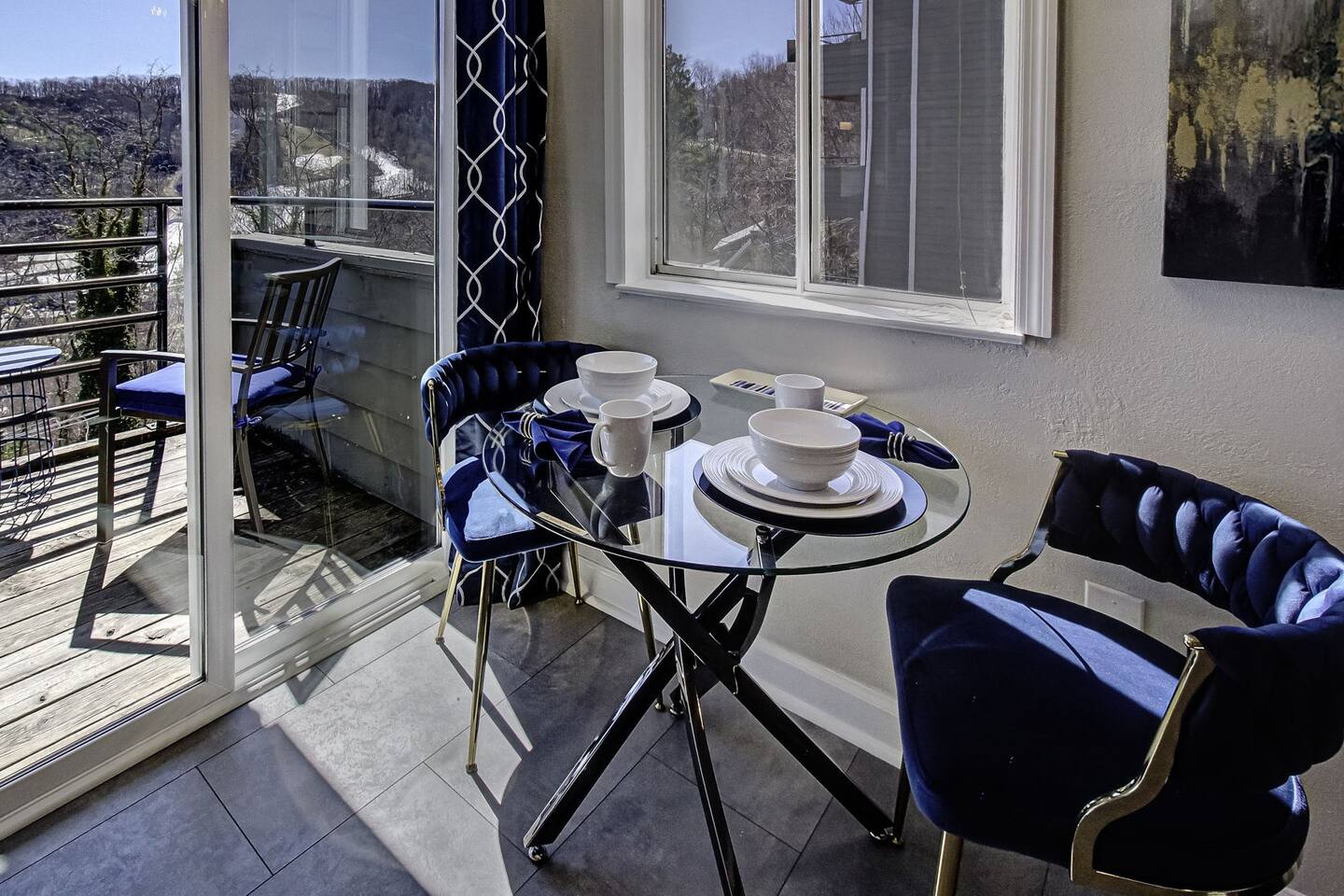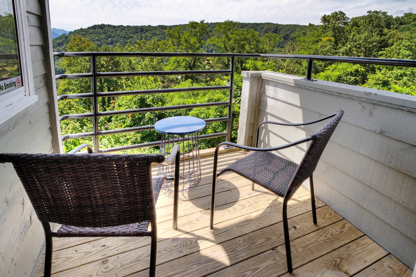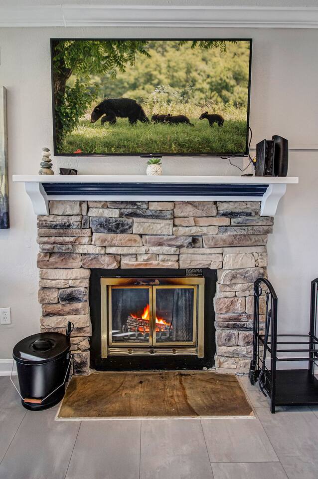 *NEW Remodel 3/1/25* Located at 3,000ft Gatlinburg Summit has unrivaled Smoky Mountain views. Our newly remodeled modern Studio includes a private balcony with incredible views of Mt. Leconte, a real wood burning fireplace, new furnishings, newly remodeled kitchen w/ granite countertops, Expanded Cable w/HBO, private High-Speed WiFi. Memory foam Queen Bed, and couch with memory foam queen sleeper. On site outdoor & indoor pool, two hot tubs, clubhouse, playground, and picnic/grill area.