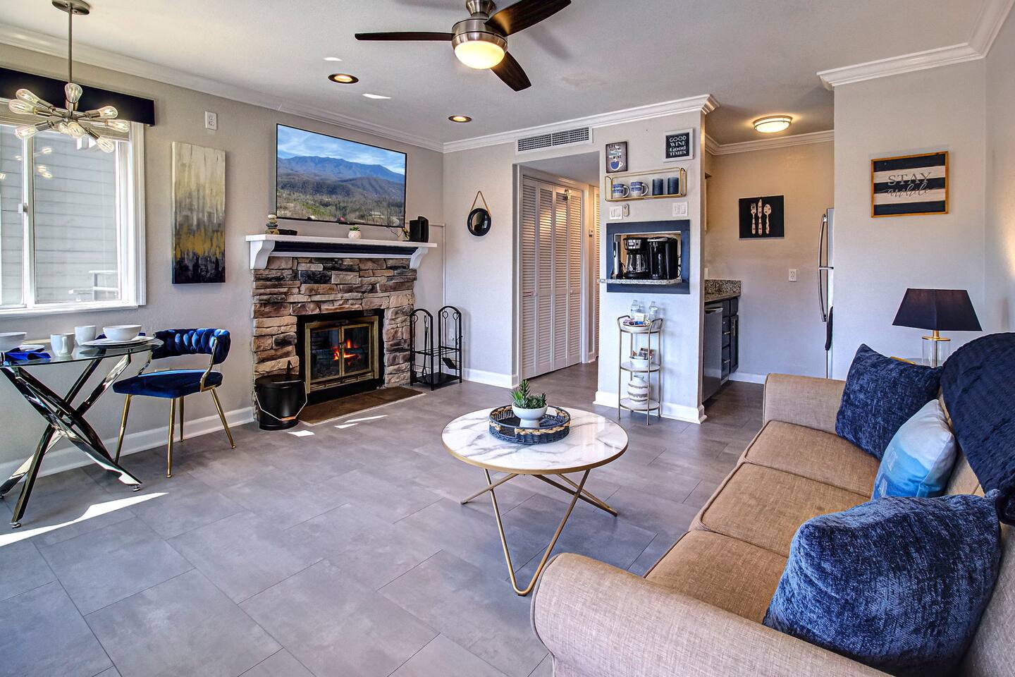 *Brand NEW Remodel completed 3/1/25. This already great unit, is even better. **New Poolhouse now open!! Heated Indoor pool and 2 in-ground hot tubs open daily. Heated outdoor pool also open. Kitchen: Newly remodeled with new granite countertop and appliances. Full-size refrigerator/freezer, K-Cup Coffee Maker and regular coffee maker, stove/oven, dishwasher, microwave, toaster, plates, cups, pots, pans, and all basic cookware. NEW-Added a 4qt CrockPot and Brita filtered water pitcher. Living Room: Real wood burning fireplace. Couch with fold out queen sleeper with memory foam mattress. 55" Roku Smart TV. Two comfortable chairs with a table to enjoy the views while drinking a glass of wine or your favorite drink. Bathroom: Shower/bathtub combo with tiled niche box. New vanity with matching mirror. Towels, hand towels, wash cloths, as well as a basic starter set of Shampoo, Conditioner, Lotion, and soap supplied. Beds: The Queen size Alcove Bed is tucked away off the living room. This queen bed has a Memory Foam mattress with drawers underneath for storage. The large window above this bed looks directly out at Mt. Leconte. Our queen sleeper couch has a fold out bed with a memory foam mattress as well. Location: Gatlinburg Summit is located in a wonderful area that is a very quiet and peaceful setting. While it is atop the mountain in order to have the magnificent views, it is still close to all the action. You are just around the corner from Ober Gatlinburg. You can skip all the Gatlinburg traffic by taking the bypass and arrive quickly and stress free. Downtown Gatlinburg is quickly accessible by 4 different locations to give you plenty of options including Ski Mountain Rd(Light #10), Sugarlands Welcome Center in the National Park(via bypass), Light #3 at Ripley's Aquarium(via Campbell Lead Rd) and the entrance of Gatlinburg(via the bypass). All of these options are just a short 10-15 minute trip. In addition, Pigeon Forge is right down the road via the bypass in about 15-20 minutes. Don't feel like driving much? Take a very short drive to Ober Gatlinburg(less than 2 miles) and ride the scenic Aerial Tram into downtown Gatlinburg. The trams run every 20 minutes so you can return whenever you please.