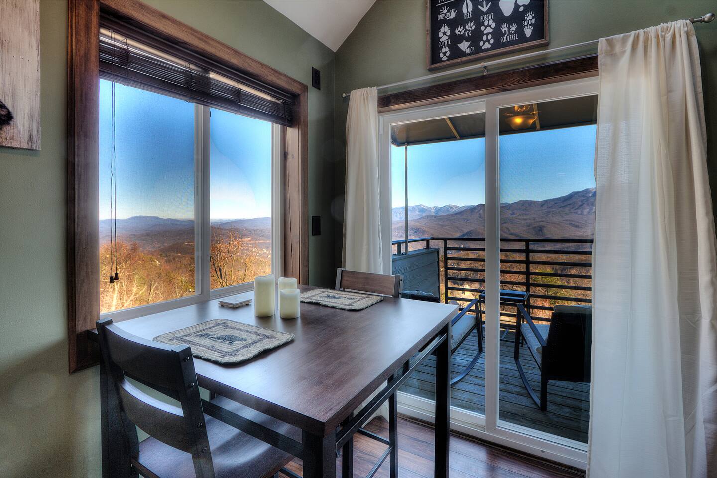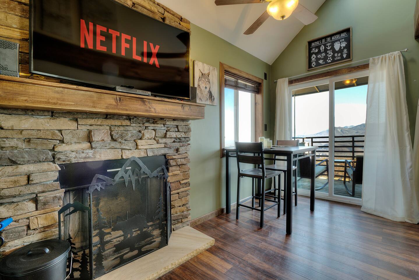 **Brand new Poolhouse now open!! Heated Indoor pool and 2 in-ground hot tubs open daily. Heated outdoor pool also open. Our unit is truly unique. Recently built in 2016. Enjoy the unobstructed, unrivaled, 180-degree view along with all the modern amenities and furnishings. From the custom stone fireplace, the exposed wooden beams, to the granite countertops, this unit will make you feel at home in the mountains. Kitchen: New granite counter-tops, appliances, cabinets. Full-size refrigerator/freezer, K-Cup Coffee Maker and regular coffee maker, full size stove/oven, full size dishwasher, microwave, toaster, plates, cups, pots, pans, and all basic cookware. NEW-Added a 4qt CrockPot and Brita water filter pitcher. Living Room: Tall vaulted ceilings with real wood burning stone fireplace. Comfy couch and leather recliner. 55" Sharp 4k Curved HDTV. Private High-Speed WiFi. Private Balcony off living room, and alcove bed with stunning views of Mt. Leconte. Two comfortable rocking chairs with a table to enjoy the views while drinking a glass of wine or your favorite drink. Bathroom: Full Bathtub/Shower. Granite countertop vanity. Towels, hand towels, wash cloths, make up cloths as well as a basic starter set of Shampoo, Conditioner, Lotion, and soap supplied. Beds: Queen size alcove bed is tucked away off living room space. This bed has tremendous views of the mountains. You can lay in bed and enjoy all the views. Upstairs is a stand alone Queen size bed in the loft area. Also upstairs in the loft is a Vanity Table with mirror, another hair dryer and a sitting area with two chairs and small table. Fresh and comfy linens, blankets, and pillows all included. Location: Gatlinburg Summit is located in a wonderful area that is a very quiet and peaceful setting. While it is atop the mountain in order to have the magnificent views, it is still close to all the action. You are just around the corner from Ober Gatlinburg. You can skip all the Gatlinburg traffic by taking the bypass and arrive quickly and stress free. Downtown Gatlinburg is quickly accessible by 4 different locations to give you plenty of options including Ski Mountain Rd(Light #10), Sugarlands Welcome Center in the National Park(via bypass), Light #3 at Ripley's Aquarium(via Campbell Lead Rd) and the entrance of Gatlinburg(via the bypass). All of these options are just a short 10-15 minute trip. In addition, Pigeon Forge is right down the road via the bypass in about 15-20 minutes. Don't feel like driving much? Take a very short drive to Ober Gatlinburg(less than 2 miles) and ride the scenic Aerial Tram into downtown Gatlinburg. The trams run every 20 minutes so you can return whenever you please.