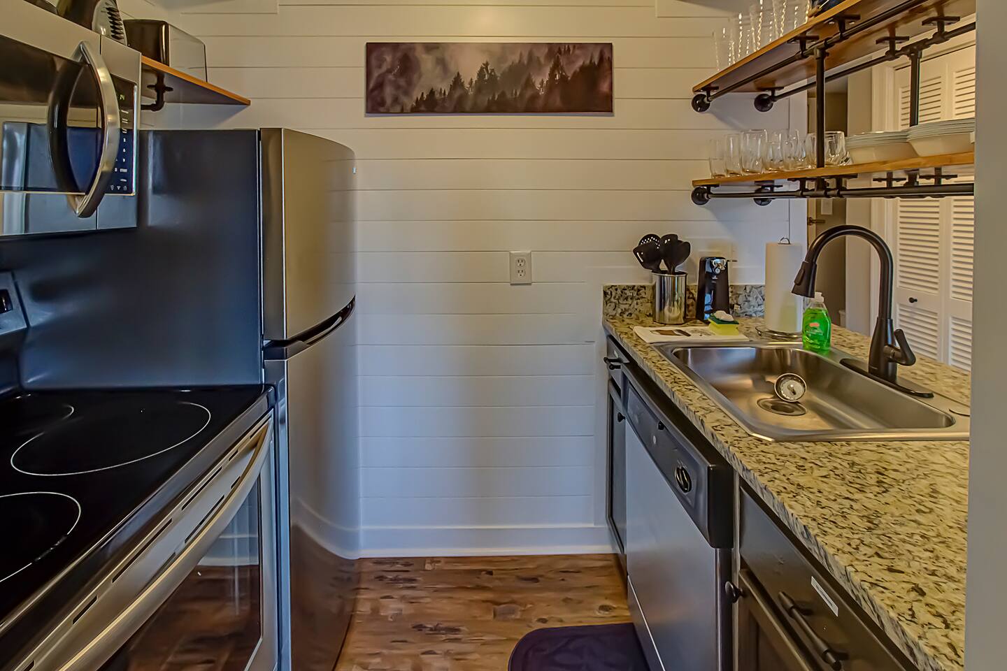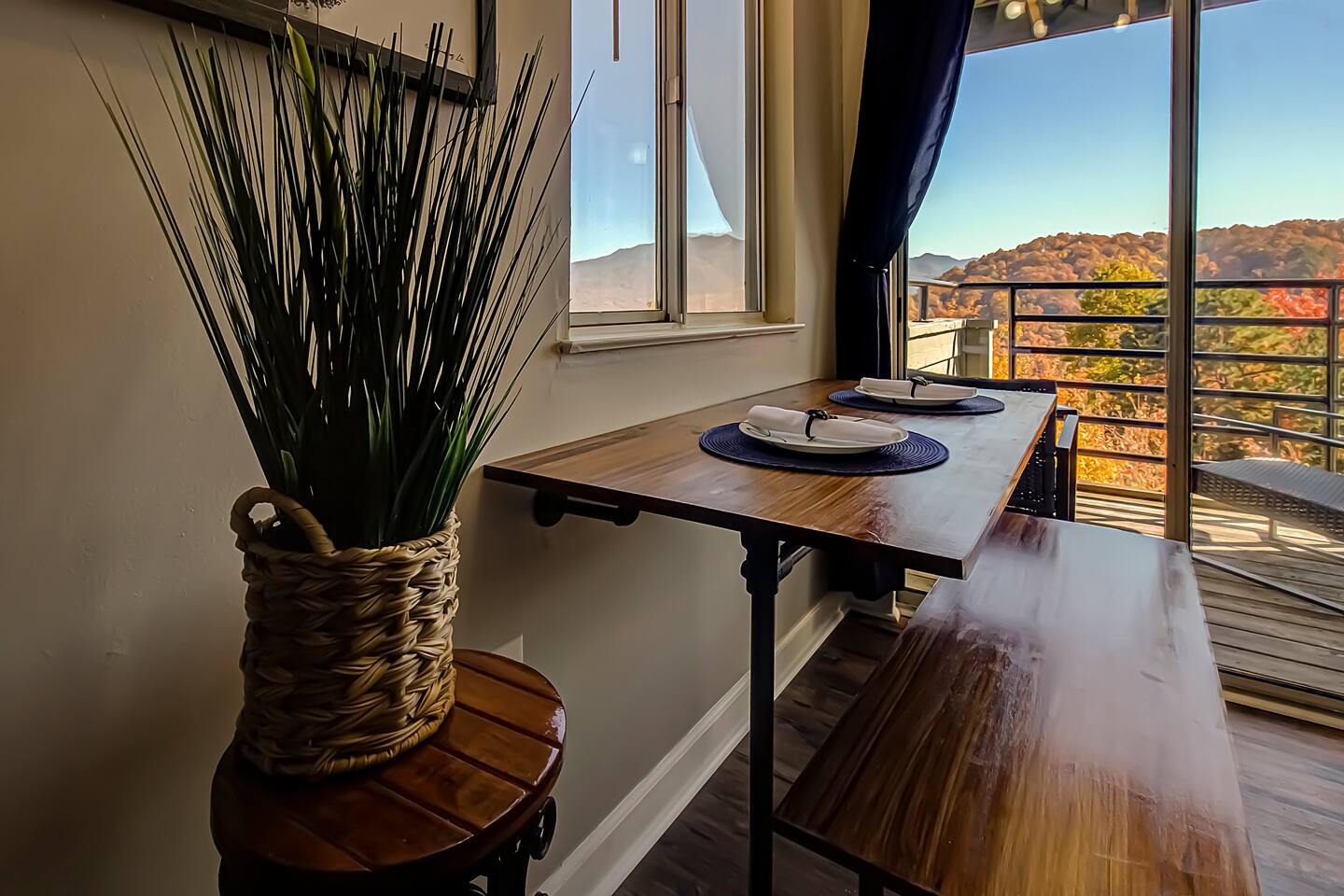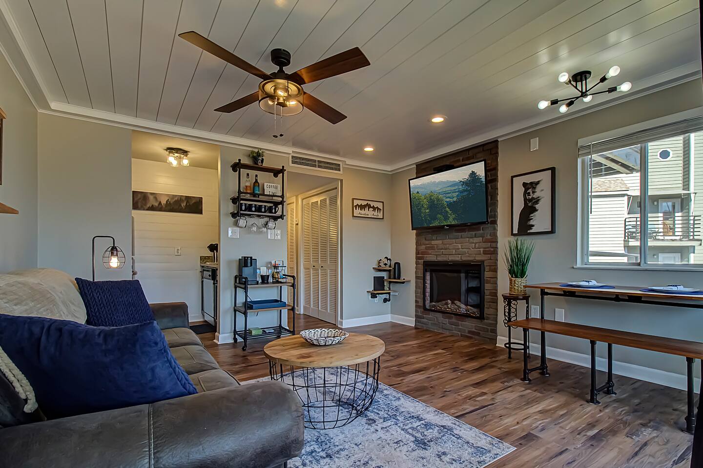 **Brand new Poolhouse now open!! Heated Indoor pool and 2 in-ground hot tubs open daily. Heated outdoor pool also open. NEW Remodel from experienced Superhost with 2,000+ 5 star Reviews! Kitchen: Newly remodeled with new granite countertop open shelving, and new appliances. Full-size refrigerator/freezer, K-Cup Coffee Maker and regular coffee maker, stove/oven, dishwasher, microwave, toaster, plates, cups, pots, pans, and all basic cookware. CrockPot, Brita filtered water pitcher, and blender also. Living Room: Brand new unique LED electric fireplace. Modern boxed beam ship-lap ceiling. Couch with fold out queen sleeper with memory foam mattress. Huge 55" Smart TV. Two comfortable chairs with a table to enjoy the views while drinking a glass of wine or your favorite drink on the balcony. Bathroom: New vanity, lights, and mirror on clean ship-lap wall. Bathtub/Shower Combo. Fresh Towels, hand towels, wash cloths, as well as a basic starter set of Shampoo, Conditioner, Lotion, and soap supplied. Beds: The Queen size Alcove Bed is tucked away off the living room. This queen bed has a new Memory Foam mattress with drawers underneath for storage. Our new queen sleeper couch has a fold out bed with a memory foam mattress as well. Location: Gatlinburg Summit is located in a wonderful area that is a very quiet and peaceful setting. While it is atop the mountain in order to have the magnificent views, it is still close to all the action. You are just around the corner from Ober Gatlinburg. You can skip all the Gatlinburg traffic by taking the bypass and arrive quickly and stress free. Downtown Gatlinburg is quickly accessible by 4 different locations to give you plenty of options including Ski Mountain Rd(Light #10), Sugarlands Welcome Center in the National Park(via bypass), Light #3 at Ripley's Aquarium(via Campbell Lead Rd) and the entrance of Gatlinburg(via the bypass). All of these options are just a short 10-15 minute trip. In addition, Pigeon Forge is right down the road via the bypass in about 15-20 minutes. Don't feel like driving much? Take a very short drive to Ober Gatlinburg(less than 2 miles) and ride the scenic Aerial Tram into downtown Gatlinburg. The trams run every 20 minutes so you can return whenever you please.