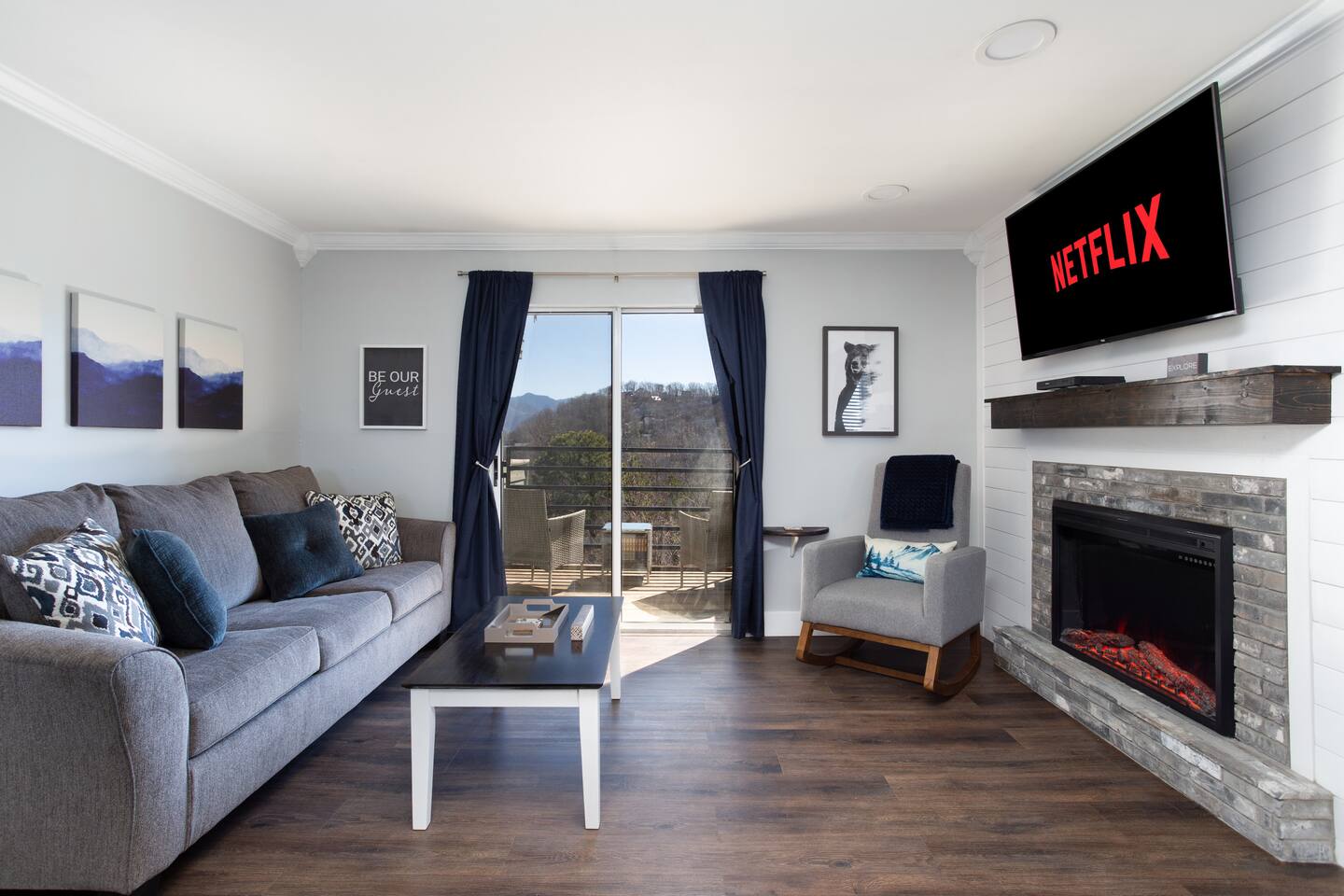 Located at 3,000ft Gatlinburg Summit has unrivaled Smoky Mountain views. Our newly remodeled modern Studio includes a private balcony with incredible views of Mt. Leconte, a new LED Electric Fireplace, new furnishings, newly remodeled kitchen w/ granite countertops, Expanded HD Cable, private High-Speed WiFi. New memory foam Queen Bed, and new couch with memory foam queen sleeper. On site outdoor & indoor pool, two hot tubs, clubhouse, playground, and picnic/grill.