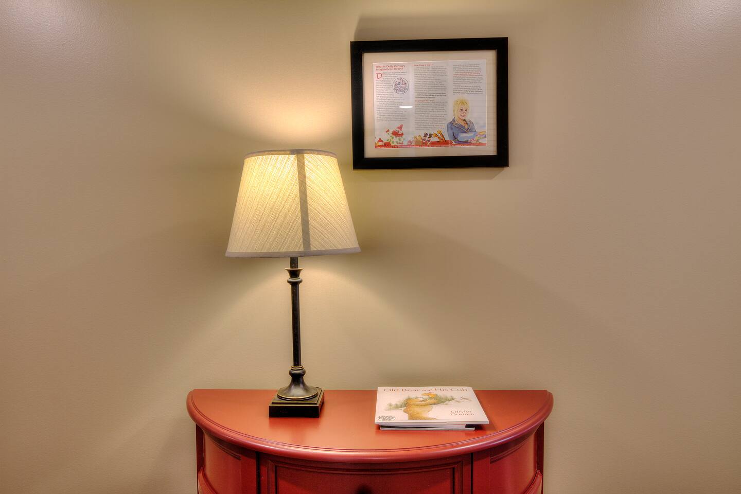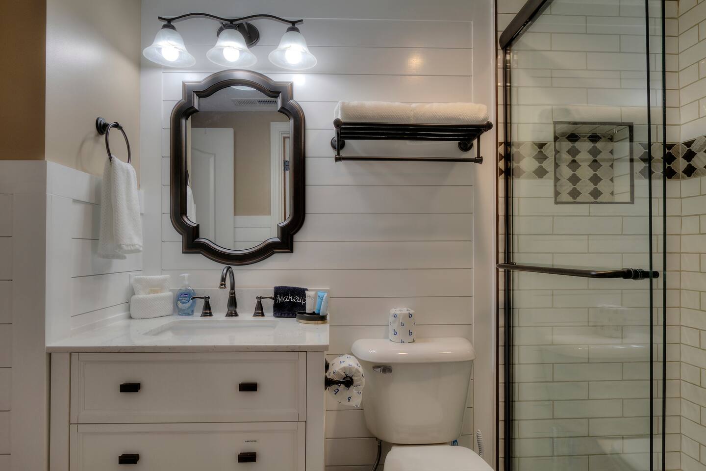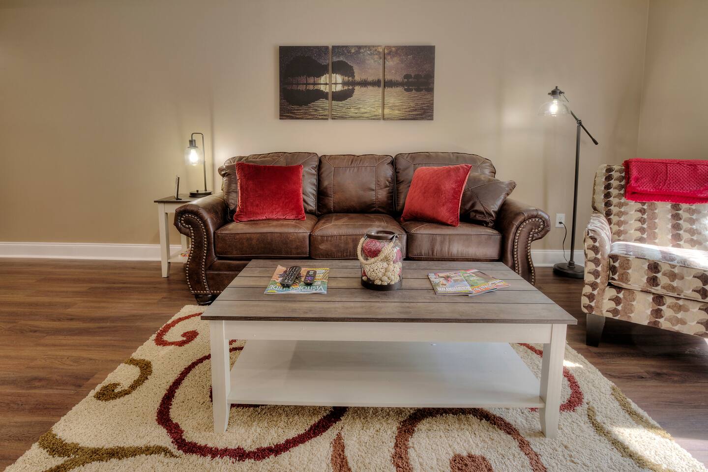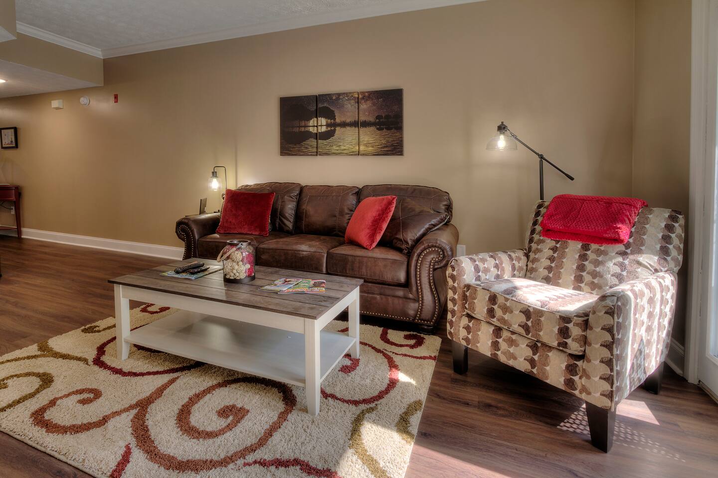 Completely remodeled all new Dolly-inspired Condo in a great location on Dollywood Lane. Close to Dollywood, Ripken, LeConte Center, and everything in Pigeon Forge as well as easy access to Gatlinburg. Fast private high speed internet, HD Cable TV Package. Kitchen: New granite counter-tops, appliances, cabinets. Full-size refrigerator/freezer, icemaker, K-Cup Coffee Maker and regular coffee maker, full size stove/oven, full size dishwasher, microwave, toaster, plates, cups, pots, pans, and all basic cookware. Bedroom: Spacious Bedroom with Queen Bed, Luxury Hybrid Memory Foam mattress(new mattress 11/27/23), ceiling fan, guest closet, 43" HDTV Smart TV, Bluetooth record player to play all your favorite music. Connects to bathroom. Bathroom: Granite counter-top, large tiled shower, with sliding glass doors. Towels, hand towels, wash cloths, make up cloths as well as a basic starter set of Shampoo, Conditioner, Lotion, and soap supplied. Living Room: 55" Smart HDTV with expanded HD Cable. Gorgeous stone fireplace with gas logs. Fold out couch with queen memory fold bed. Private patio off of living room.