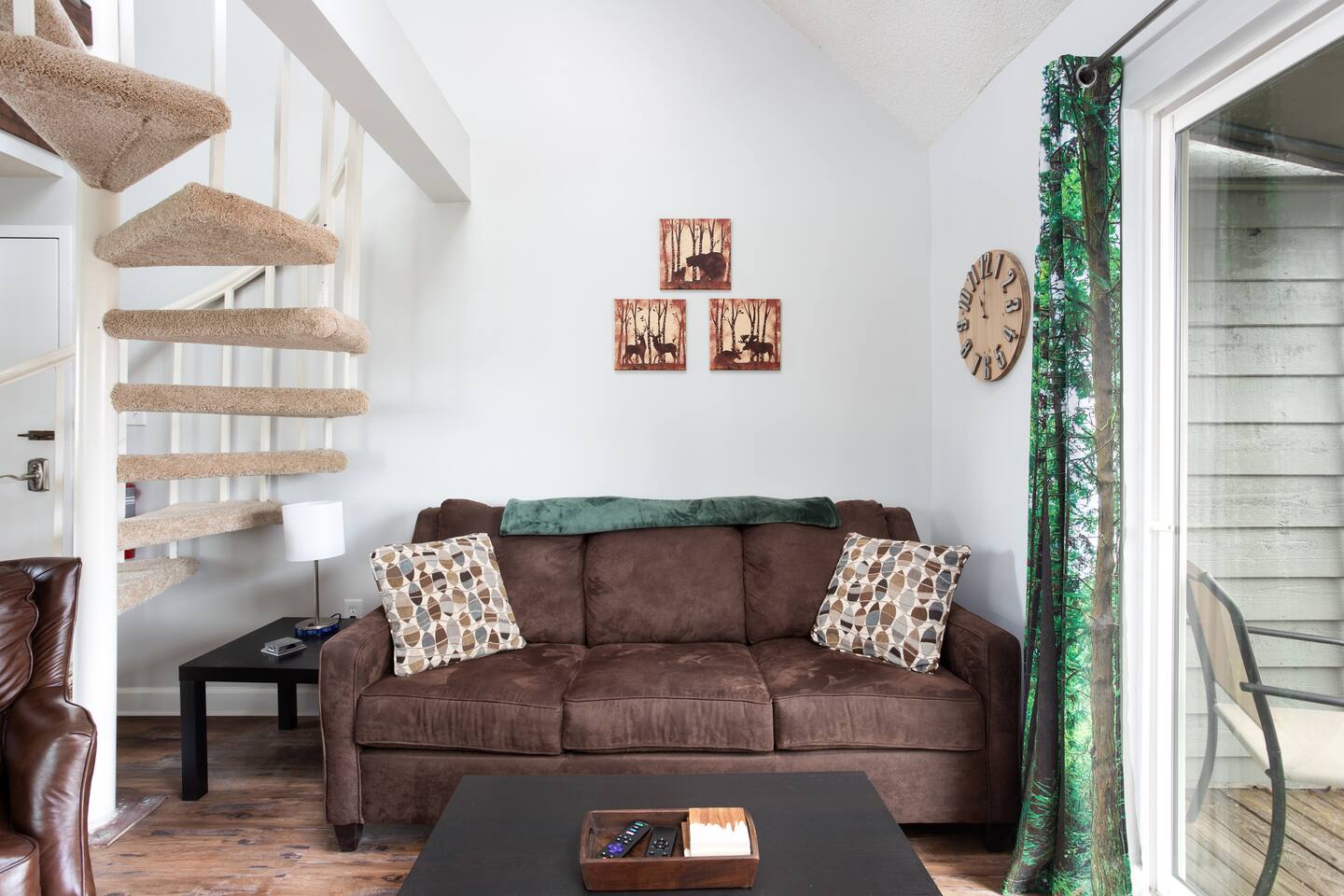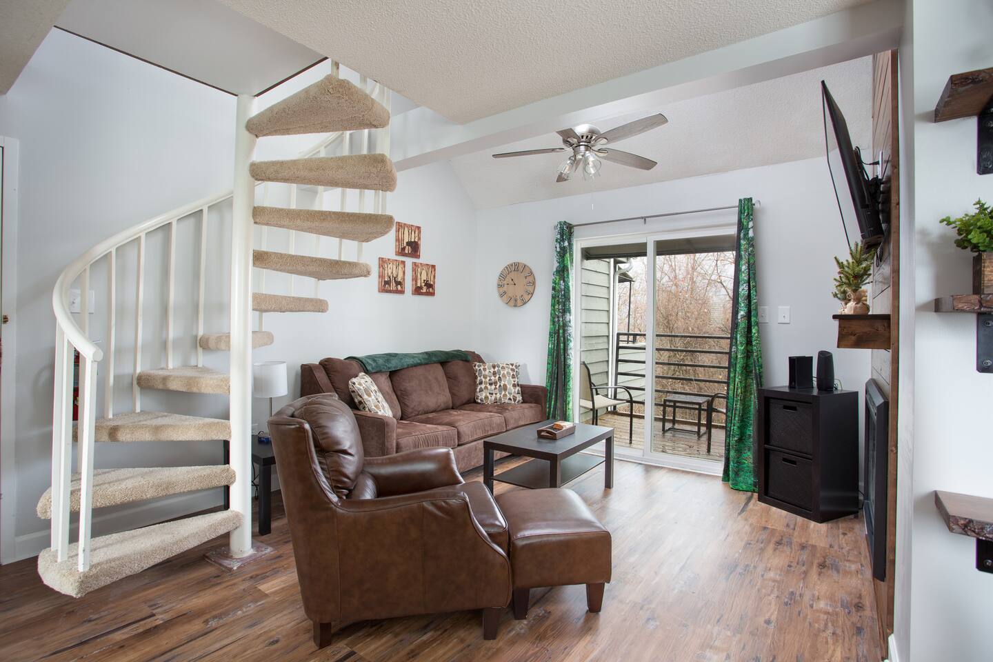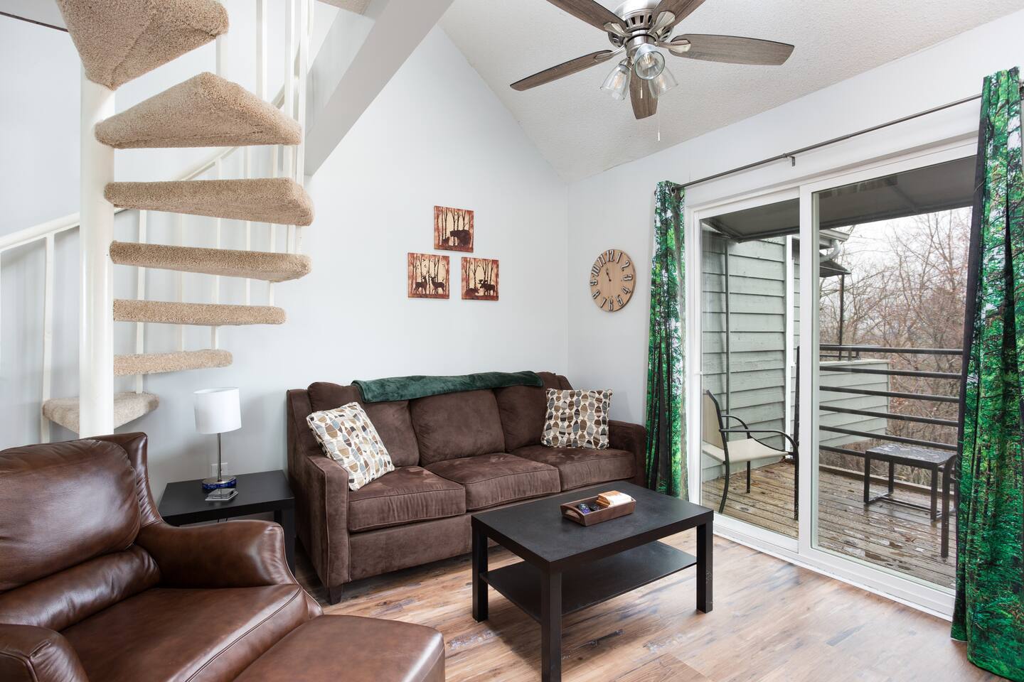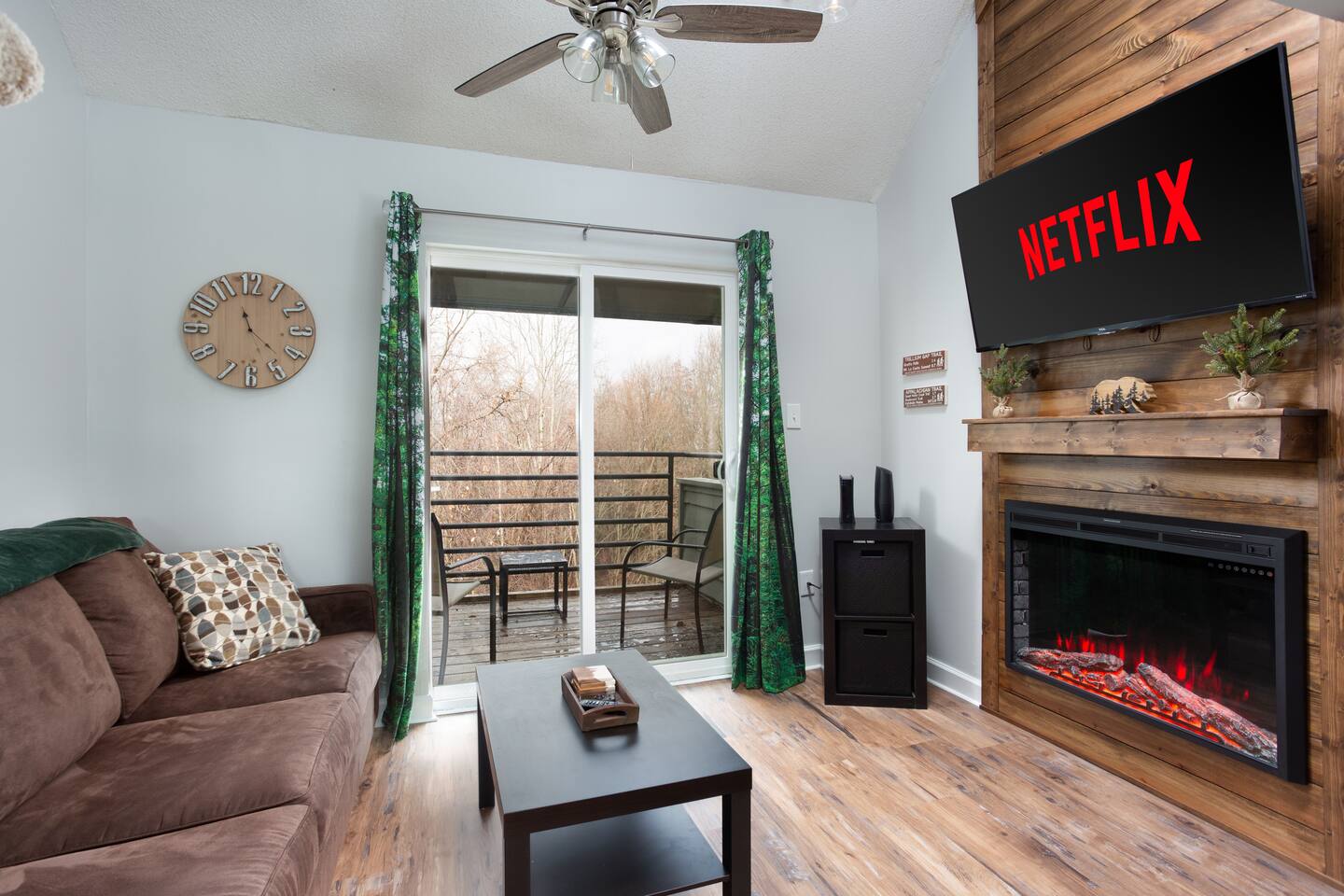 **Brand new Poolhouse now open!! Heated Indoor pool and 2 in-ground hot tubs open daily. Heated outdoor pool also open. *NEW listing from experienced SuperHost with over 3,000+ Reviews. Kitchen: Newly remodeled with granite countertops. Full-size refrigerator/freezer, K-Cup Coffee Maker and regular coffee maker, stove/oven, dishwasher, microwave, toaster, plates, cups, pots, pans, and all basic cookware. Living Room: Tall vaulted ceilings with new modern electric fireplace. Comfy couch and chair for viewing the 50" Roku HDTV. Private High-Speed WiFi. Private Balcony off living room with peaceful wooded views. Two chairs with a table to enjoy the views while drinking a glass of wine or your favorite drink. Bathroom: Full Bathtub/Shower. New vanity. Towels, hand towels, wash cloths, as well as a basic starter set of Shampoo, Conditioner, Lotion, and soap supplied. Beds: Queen size alcove bed is tucked away off living room space. Up the spiral staircase in the loft area is a stand alone Queen size bed, 42" Roku HDTV, and closet. Comfy linens, blankets, and pillows. Location: Gatlinburg Summit is located in a wonderful area that is a very quiet and peaceful setting. While it is atop the mountain in order to have the magnificient views, it is still close to all the action. You are just around the corner from Ober Gatlinburg. You can skip all the Gatlinburg traffic by taking the bypass and arrive quickly and stress free. Downtown Gatlinburg is quickly accessible by 4 different locations to give you plenty of options including Ski Mountain Rd(Light #10), Sugarlands Welcome Center in the National Park(via bypass), Light #3 at Ripley's Aquarium(via Campbell Lead Rd) and the entrance of Gatlinburg(via the bypass). All of these options are just a short 10-15 minute trip. In addition, Pigeon Forge is right down the road via the bypass in about 15-20 minutes. Don't feel like driving much? Take a very short drive to Ober Gatlinburg(less than 2 miles) and ride the scenic Aerial Tram into downtown Gatlinburg. The trams run every 20 minutes so you can return whenever you please.