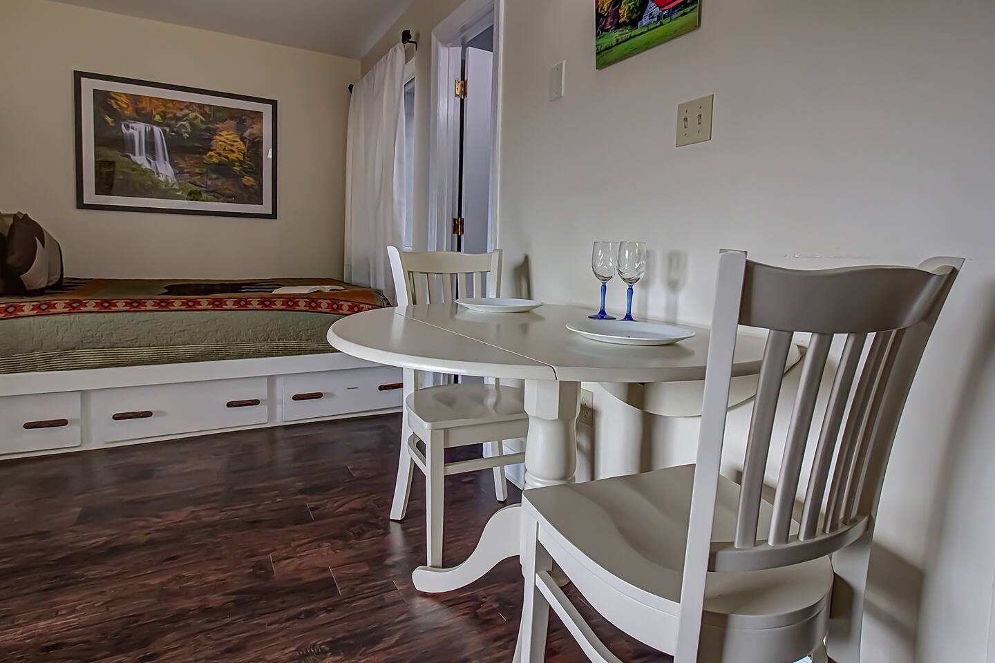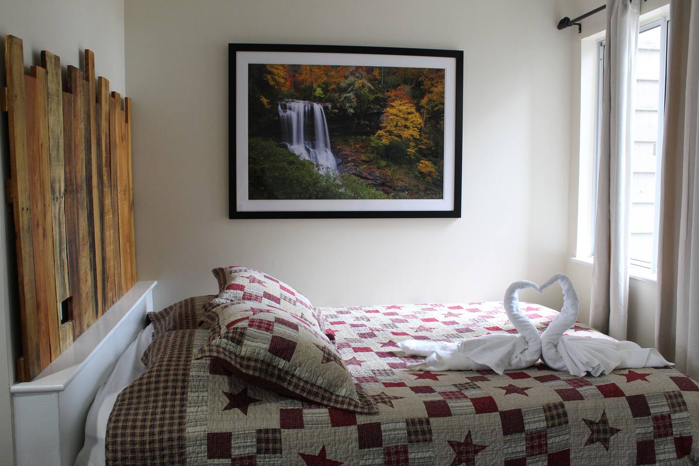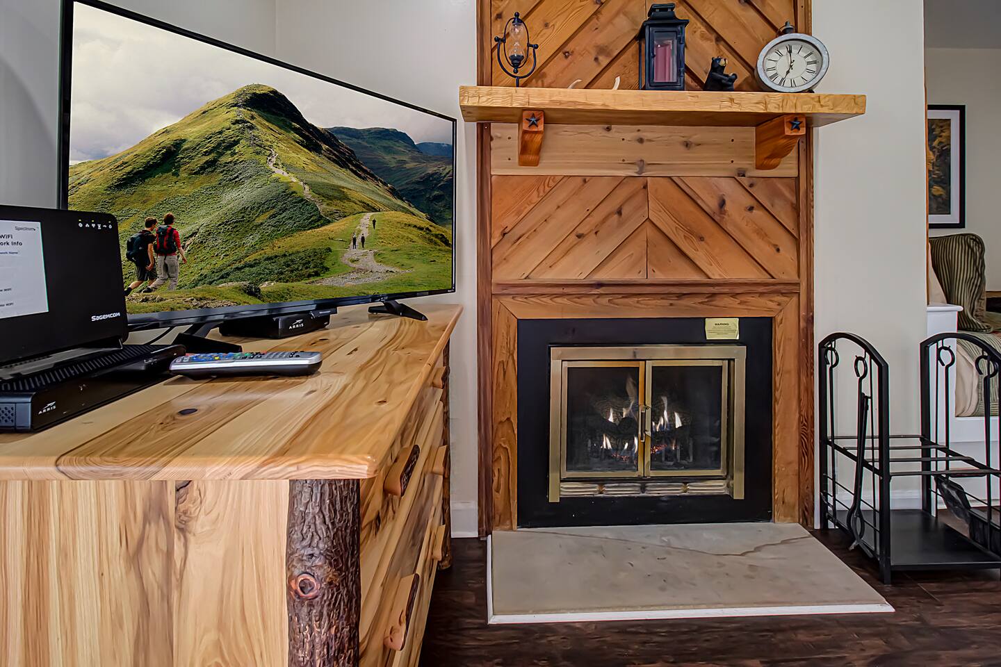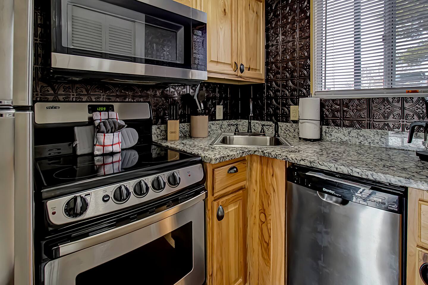 **Brand new Poolhouse now open!! Heated Indoor pool and 2 in-ground hot tubs open daily. Heated outdoor pool also open. 400 square ft. Studio Condominium Kitchen: - granite countertops - stainless steel appliances - Coffee maker-Keurig duo - Toaster - Plates, cups, bowls, silverware, wine glasses, mugs - Pots, pans, pizza pan, basic cookware/silverware - Starter dish soap, dishwasher detergent, and paper towels provided Living Room: - Wood burning fireplace - 42 inch ROKU smart TV with cable television included - Sofa sleeper with fold out queen memory foam mattress and mattress pad (2nd Bed) - Three drawer dresser - Balcony has mosaic glass inlaid table with two chairs and cushions to enjoy view - Dining room table with seating for two - Salt and Pepper shakers on table Bed: ( NEW Hybrid Memory Foam Mattress installed 3/28/23) - Queen Hybrid memory foam mattress with Allerease Ultimate mattress encasement -Linens provided - Queen platform bed includes three built-in drawers for additional storage Restroom: - Full bathtub and shower - vanity, fixtures, and fog-free mirror - Hand towels, wash cloths, bath towels included